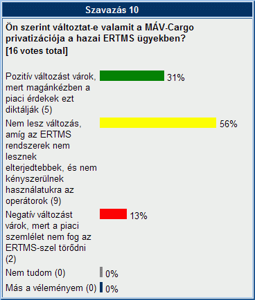 Új hónap, új szavazás. Küszöbön áll a MÁV Cargo privatizációja. Ön szerint jelentheti ez a Cargo erősebb szerepvállalását az ERTMS kérdésekben hazánkban? Szavazataikat kiváncsian várjuk!