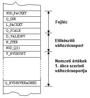 Az 1. ábrán mutatott táblázat változói a 3. paketen belül informatikai szempontból először egy ún. fejléccel, majd egy előkészítő változócsoporttal megfejelten szerepelnek. Mindez a paket szerkezetét mutató 2. ábrán jól látható. Az itt mutatott fejléc formátuma a paketek többségénél ugyanilyen, az előkészítő változócsoport formátuma viszont csak annyiban hasonló, hogy az iteráció-jelzés szinte mindenütt szerepel.