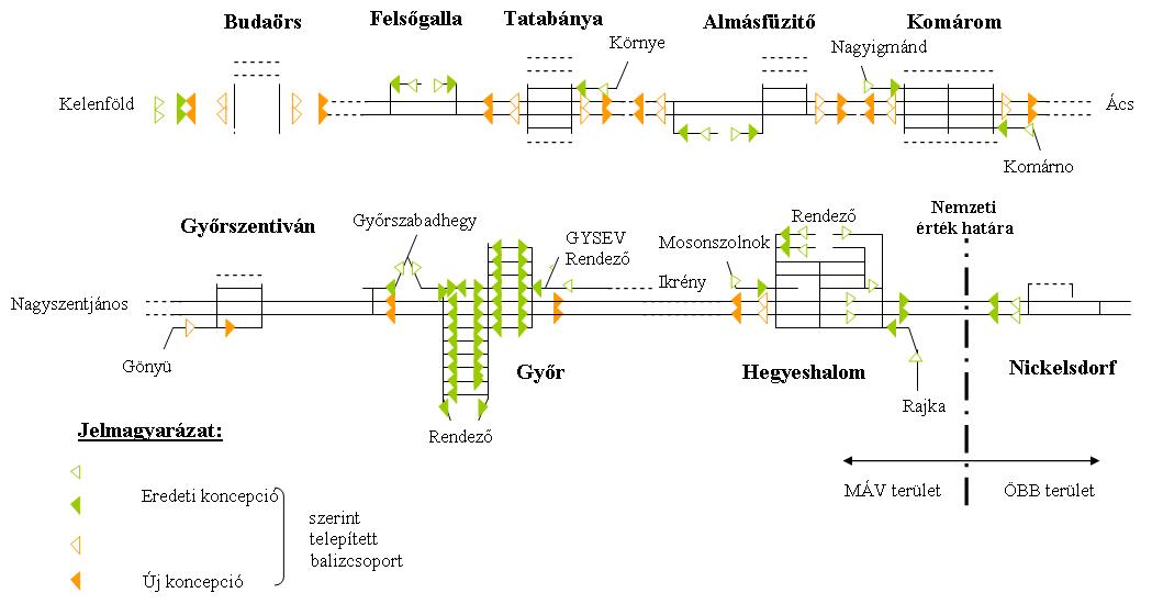 Győr esete is érdekes azért, mert itt minden vonatindító vágány kijárati jelzőjéhez tartozó balíz fel lett jogosítva a 3. paket feladásra, és a két legkülső kijárati jelzőpárhoz tartozó ismétlőbalízt pedig utólag tették a tervezők alkalmassá erre. Így Győr már egyféle átmenetet képez az első, és a második nemzeti értékfeladási koncepció között.